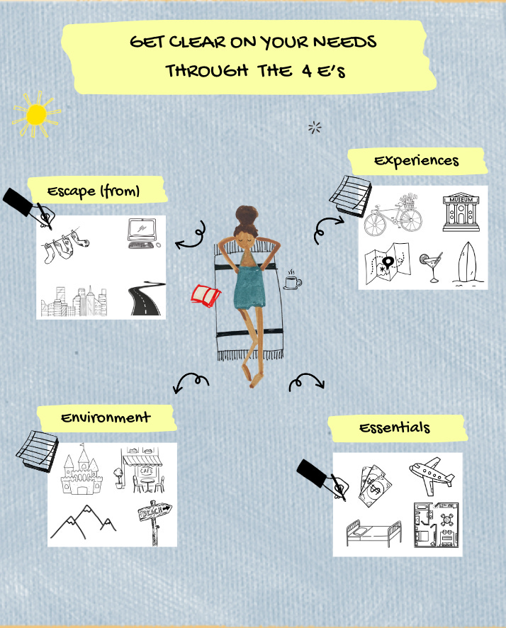 A recommendation can feel amazing but the truth is, to find YOUR dream holiday you have to get really clear on what YOU want and need from it. Your appetite for adventure, for dis/comfort, your non-negotiables on accommodation, the spaces and activities you find rejuvenating and crucially, what it is you and your family need a break from.